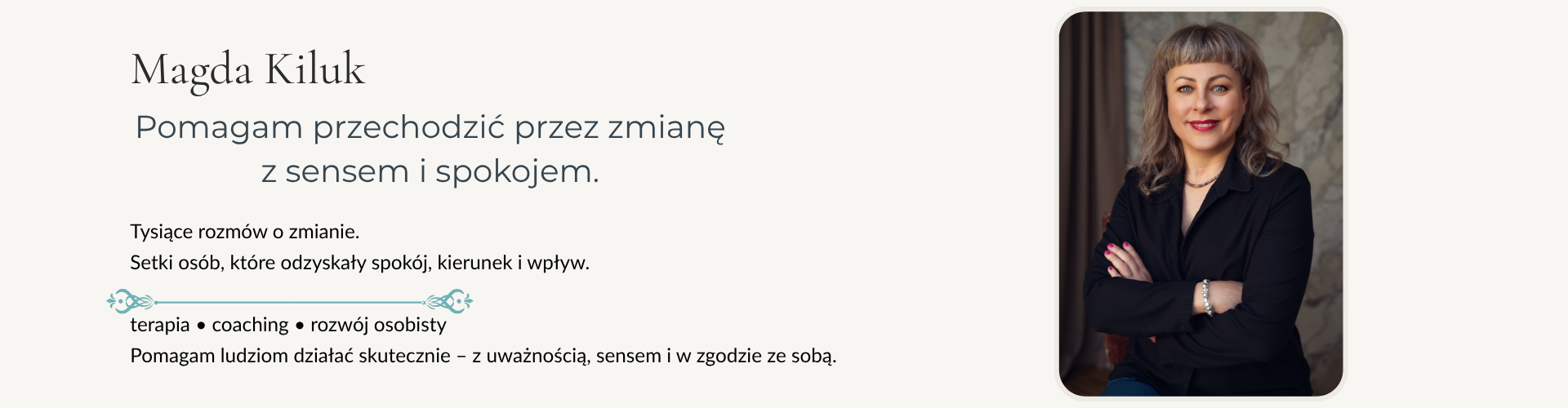 Towarzyszę ludziom wtedy, gdy rzeczywistość delikatnie (albo dość stanowczo) mówi: „„Dość. Czas inaczej.””